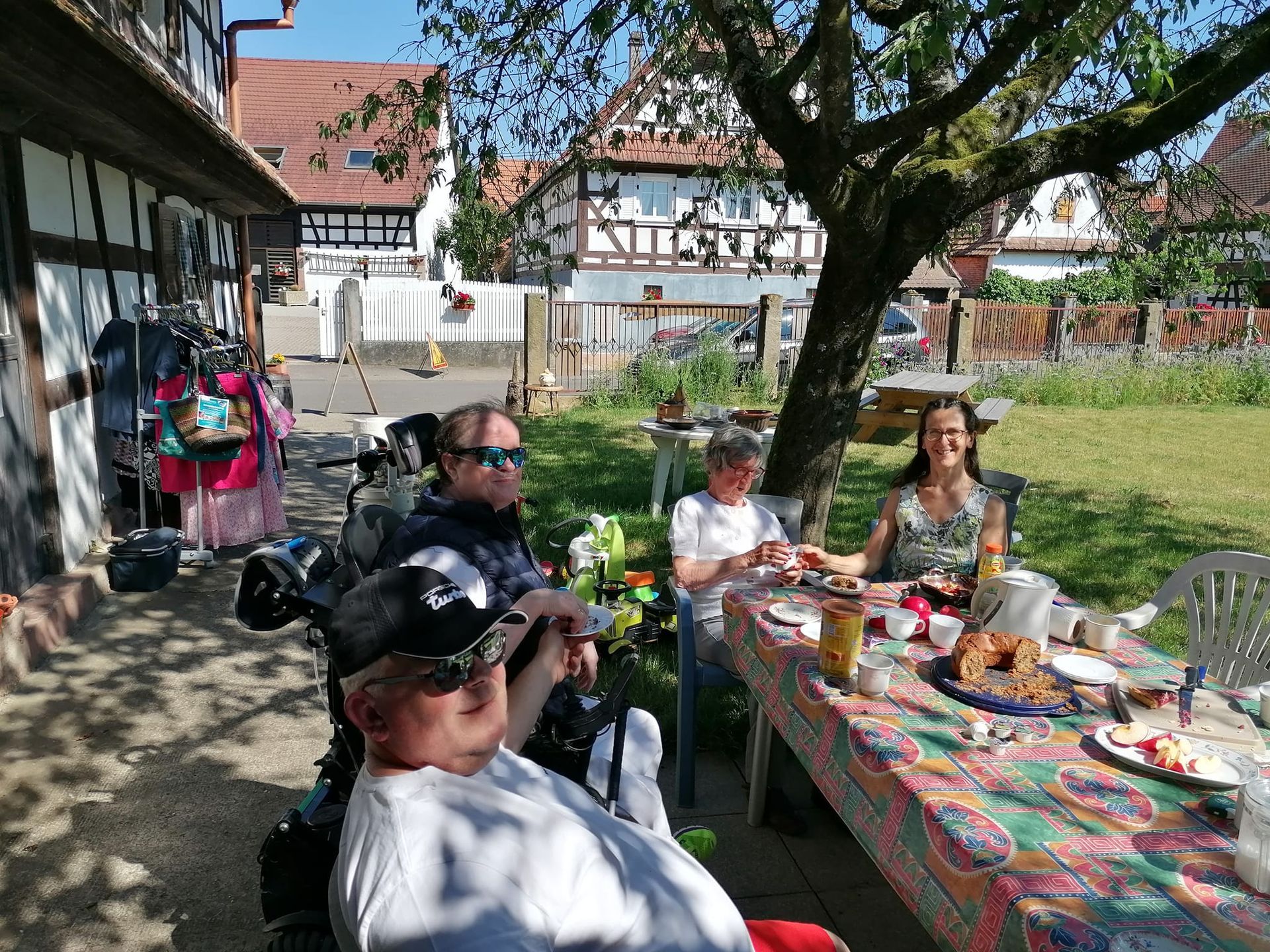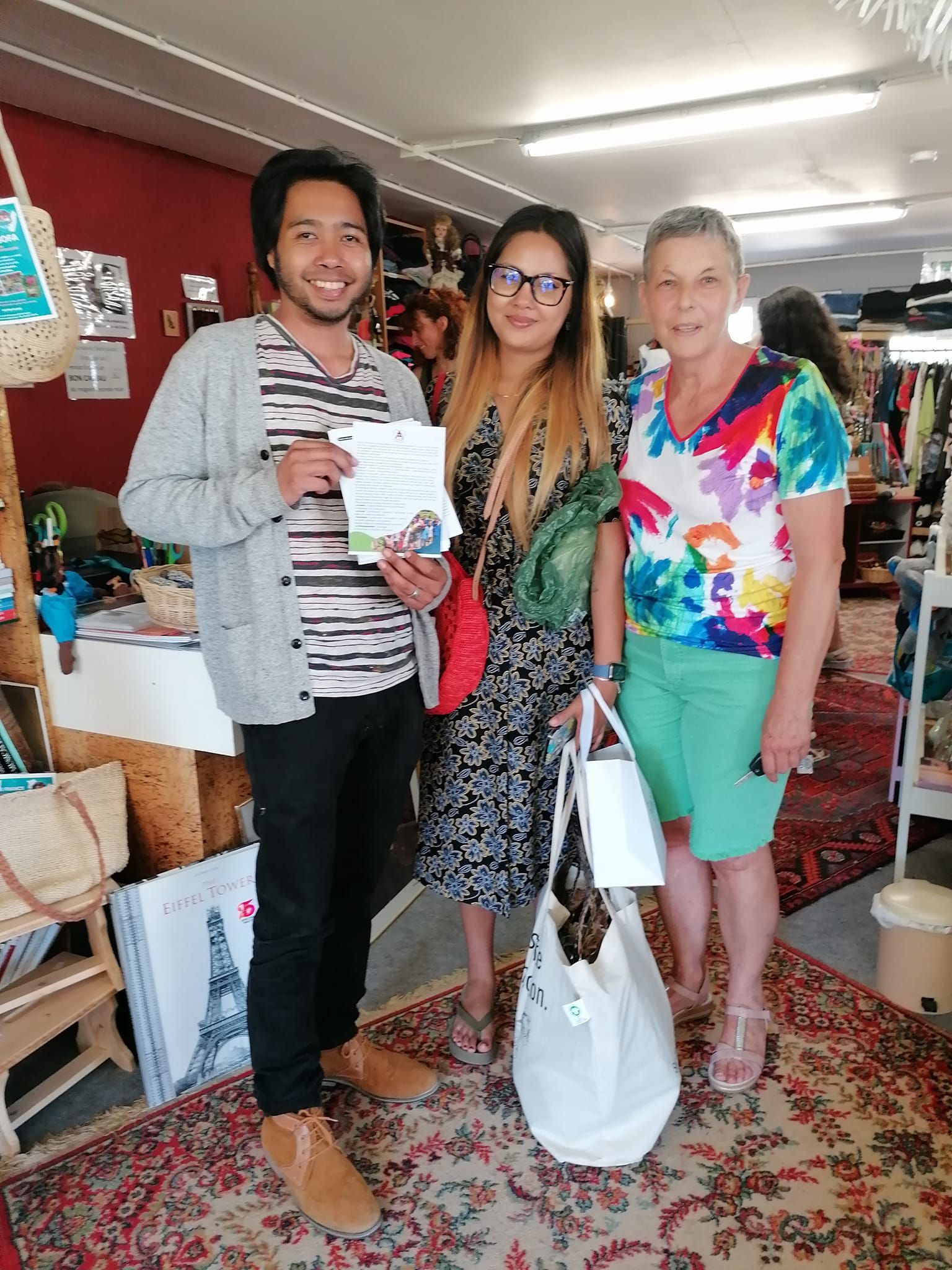 Belle rencontre entre Joëlle et Michel Rahajason, enfants du fondateur d'AVOTRA Madagascar, et co-administrateurs actuels de l'orphelinat AVOTRA et des bénévoles et des clients du magasin solidaire de HUNSPACH