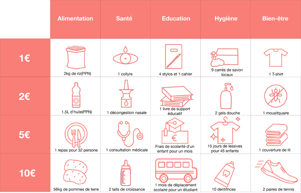 L'argent est utilisé pour acheter des denrées alimentaires ou des produits de première nécessité, des médicaments etc...